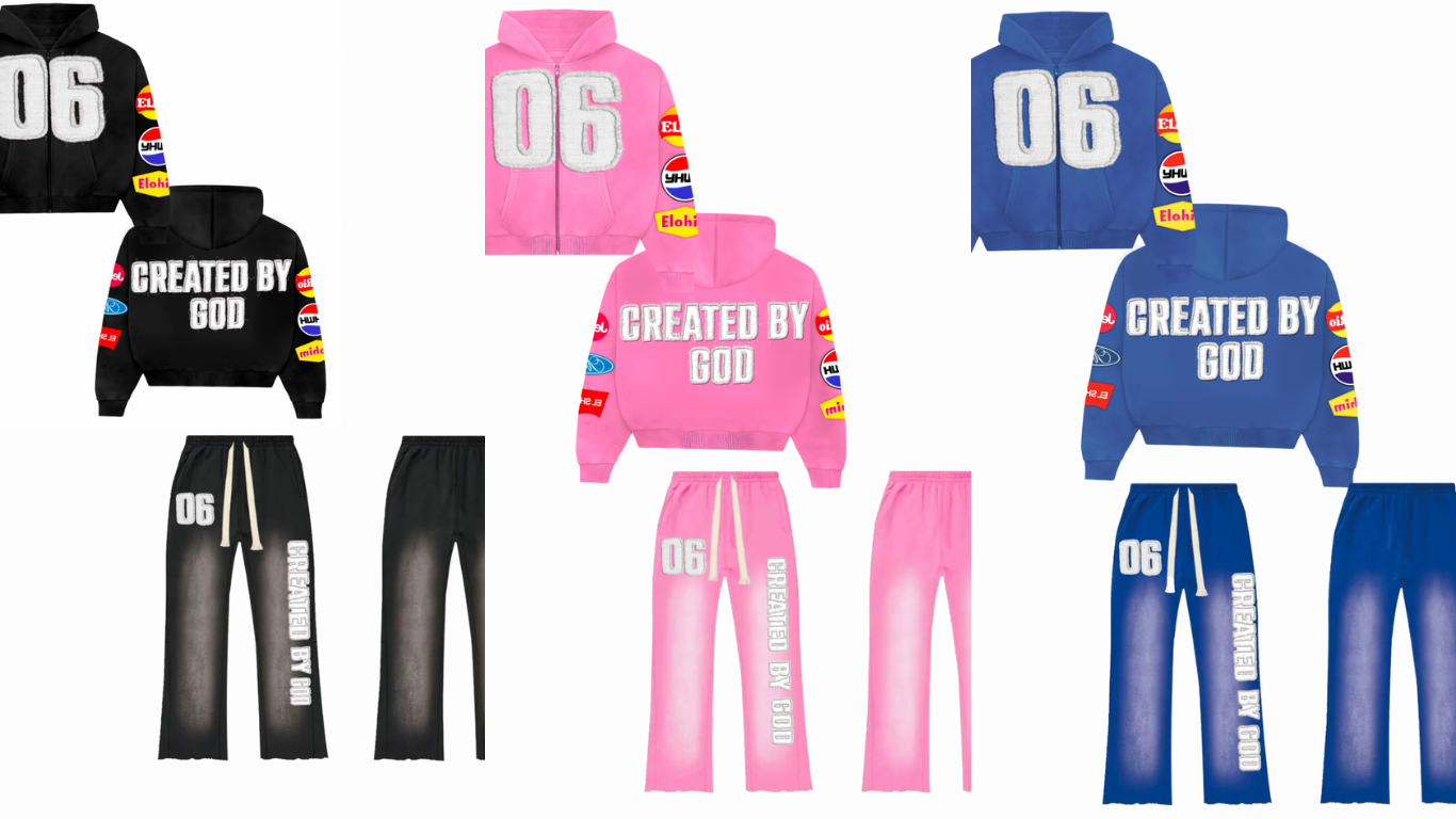 Crafted from high-quality, thick fabric, this sweatsuit delivers both comfort and durability while maintaining a premium streetwear look. Each set features “06 – Created by God” embroidery, symbolizing mankind’s creation on the sixth day. The sleeves are detailed with logos and the names of God found in the Bible, serving as a wearable declaration of faith and purpose.